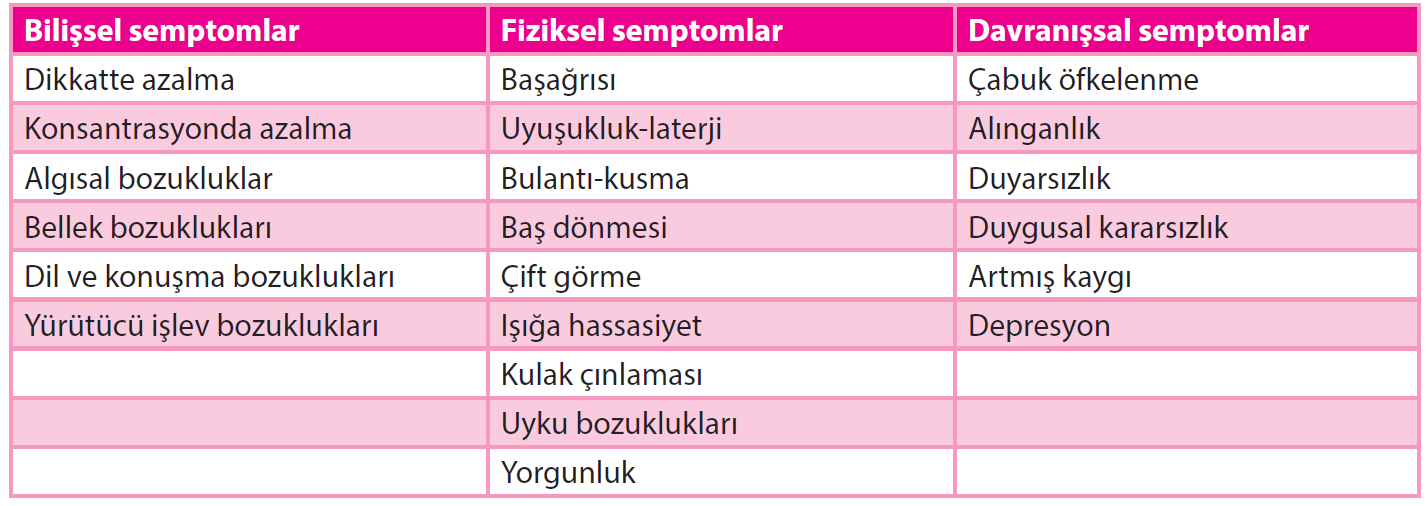 düşünülür (Durmaz, 2008). Hafif travmatik beyin hasarı genellikle genç erişkinlerde spor yaralanmalarında ve spor sırasındaki düşmeler sonrasında ortaya çıkar. Hafif şiddetli travmalar sonrasında ortaya çıkan semptomlar geçici olabildiği gibi kalıcı da olabilir (Murdoch ve Theodoros, 2001).