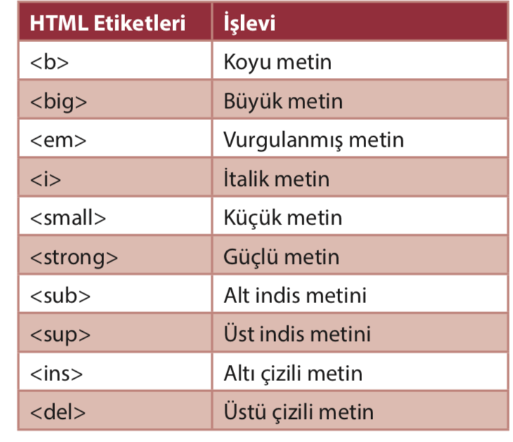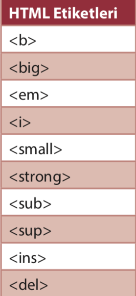 Kapama Etiketi:</ ETİKET ADI > şeklinde ya- zılmaktadır. Örnek; <B> Kalın Yazı Stili </B>