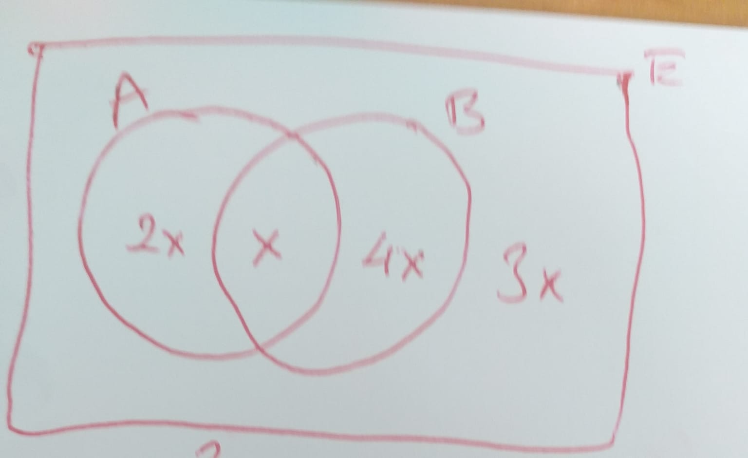 Let x be the number of students taking both courses(AnB). Then, the number of students taking course A but not B will be A|B=2x (since 1/3 of students taking course A are also taking course B). Also, the number of students taking course B but not A will be B|A=4x (since 1/5 of students taking course B are also taking course A). Finally, the number of students taking neither of courses will be 3x (Since the number of students taking neither course A nor B is 3 times of the students taking both courses).