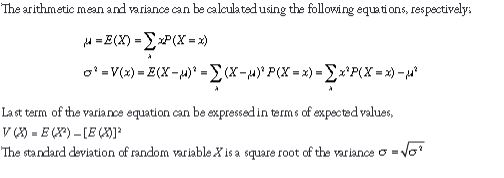 The mean (μ) and variance (σ2) of the binomial random variable X ~Binomal (n, p) can be calculated from these formulas