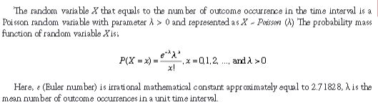 The Poisson distribution is widely used for discrete probability distribution which is used to model the number of outcomes occurring during a specified time interval or in a definite region. Here, the time interval indicates any length, for instance an hour, a day, or a month. Also, the definite region term means that a piece of line segment, an acre, size of a football field, a volume.
