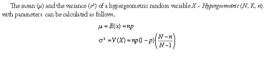 How are the mean and variance of hypergeometric distribution calculated?