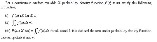 What are the properties of the probability denstiry function of a continuous random variable?