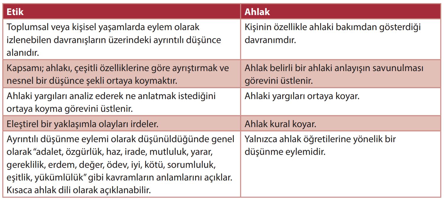 Etik ve ahlak arasındaki farkları açıklayınız.