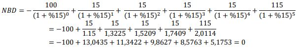 Projenin net bugünkü değeri sıfır çıktığı için işletmenin beklediği kazancı veriyor demektir. Bu da projenin yapılabilir olduğu anlamına gelir.