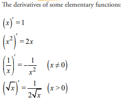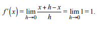 For the identity function f(x) = x, the derivative is 1, that is, (x)' = 1. Indeed