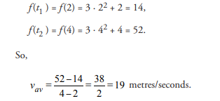 A particle moves along the x-axis in such a way that its position at time t is f(t) = 3t2+ t (metre). Find the average velocity vav over the interval [2, 4].