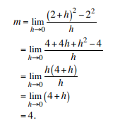 Find the slope of the tangent line to the curve y = x2 at the point (2, 4).