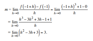 Find the slope of the tangent line to the curve y = x3 + 1 at the point (–1, 0).