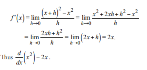 We just need to apply the definition of derivative to the function f(x) = x2. On doing so, we get