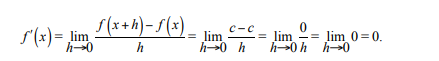 For a constant function f(x) = c the derivative is zero, that is, (c)' = 0. Indeed,