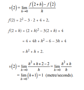 The motion of a particle is given by the function f(t) = t2 – 3t + 4. Find its velocity at the instant t = 2.