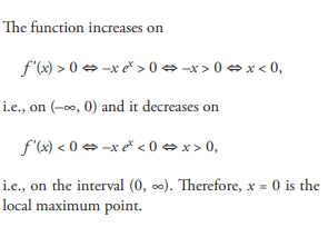 What are the local extremum points and intervals of decrease and increase of the function f(x) = (1 – x) ex?