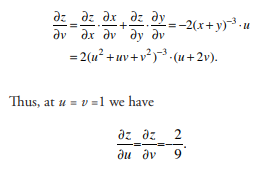 For z = (x + y)-2, and x = u2+v2 and y=uv, find the partial derivatives