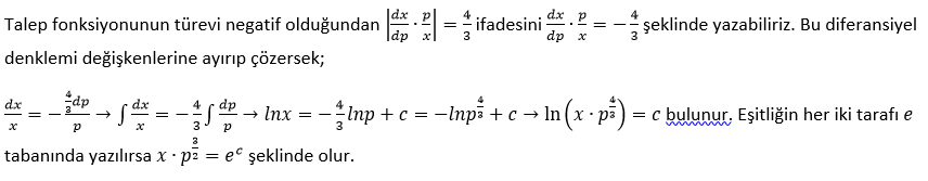 Bir malın talep fiyat esnekliği 4/3 olarak verildiğine göre bu malın miktarı ve fiyatı arasındaki ilişkiyi veren talep denklemini bulunuz