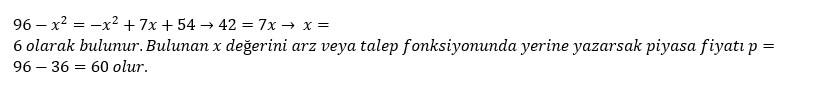 Arz ve talep fonksiyonunun eşit olduğu noktadaki fiyat, piyasa fiyatı olduğuna göre, p=p(1) eşitliğinden