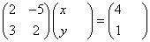 In order to write the equation system we have to first find the coefficient matrix. Then we write as CX=D where C is the coefficent matrix, X is the variable vector (x, y) and D is the right side of the equations.