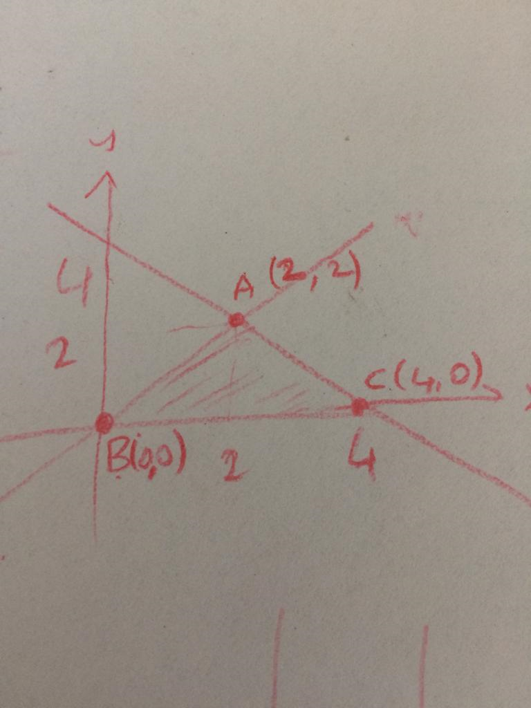 So x+y=2x=4, x=y=2. So point (2,2) is one corner (point A).