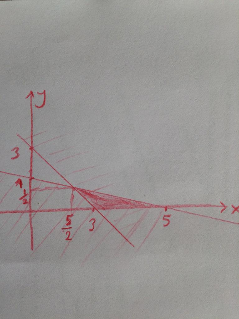 First we have to find the intercepts of the inequalities. For the first inequality: