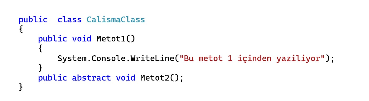 'CalismaClass.Metot2()' is abstract but it is contained in non-abstract type 'CalismaClass'
