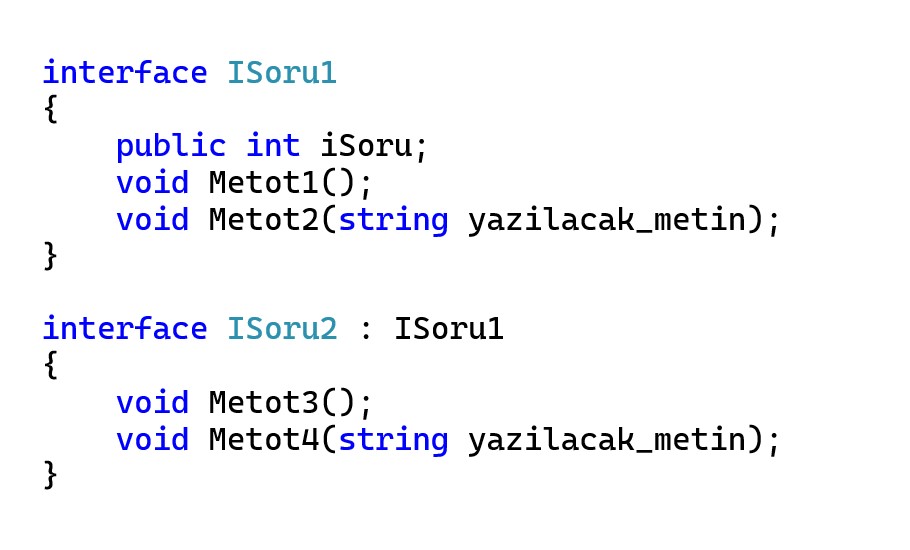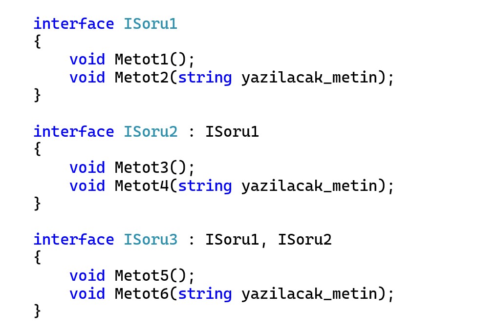Bu program derleme hatası verecektir. Bir interface veri elemanı yani değişken içeremez.