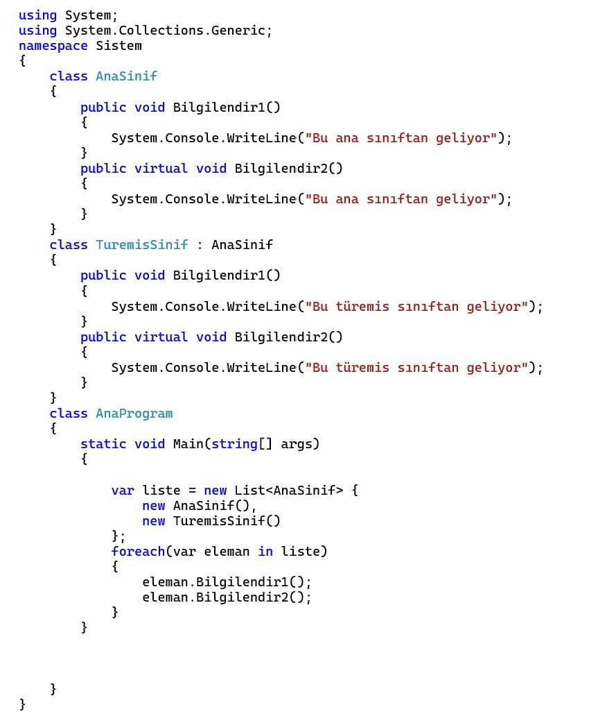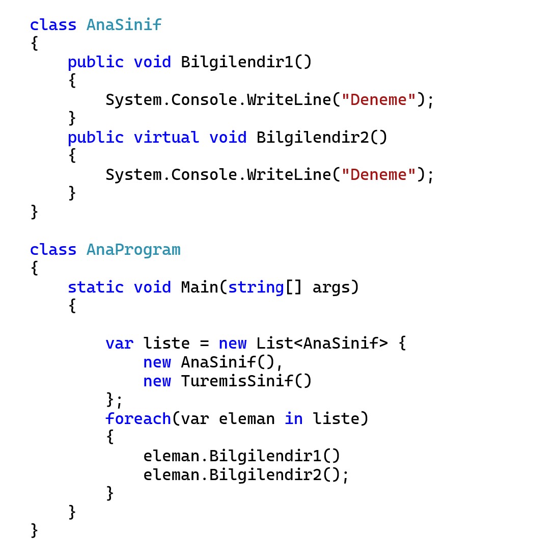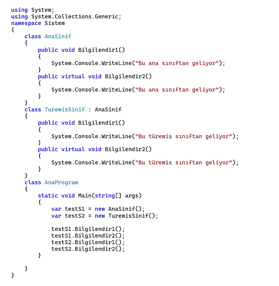 • Temel, üst sınıf içinde “private” olarak tanımlı metotlar “override” edilemez.