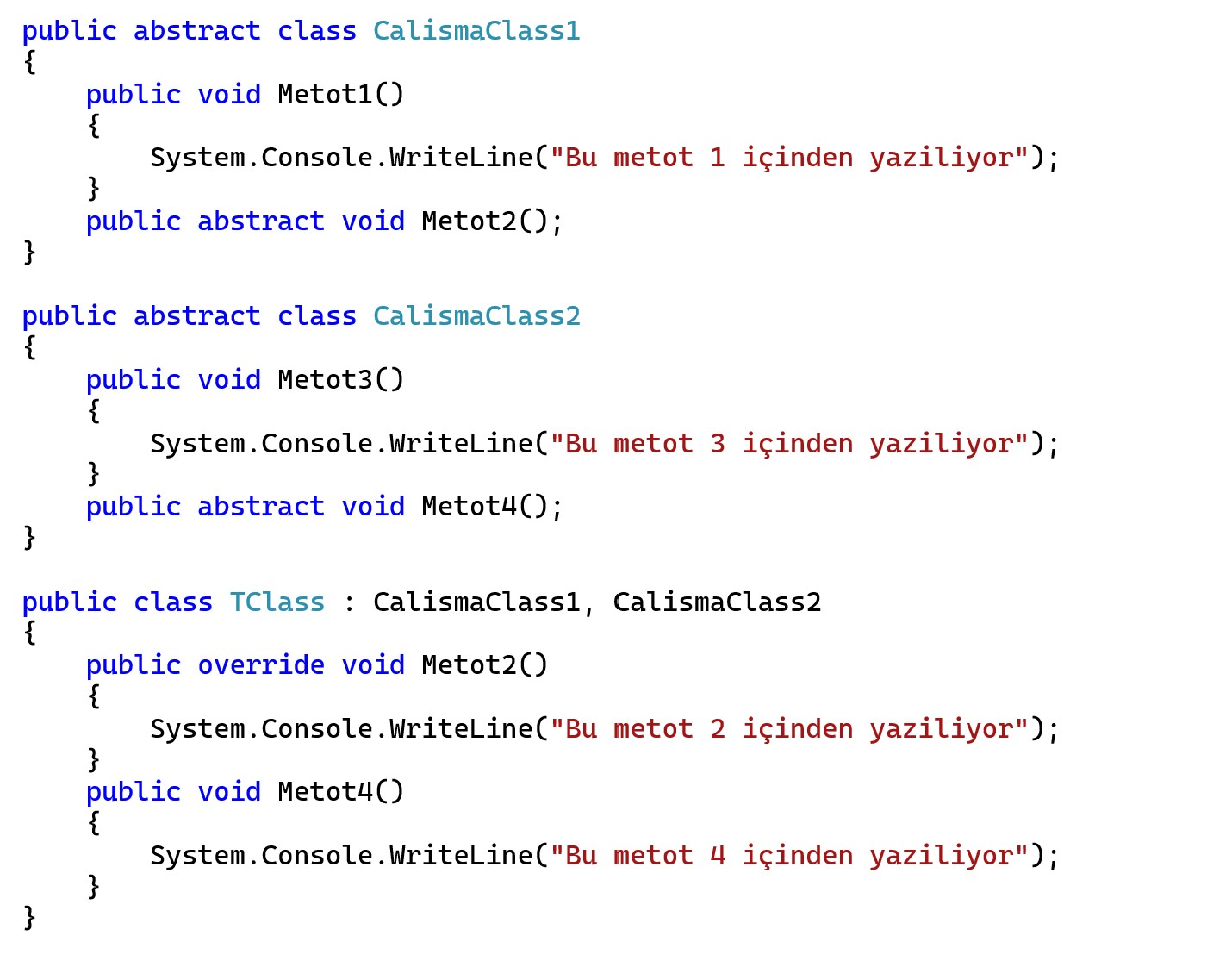 Burada TClass iki abstract class kullanılarak türetiliyor. Bunu yapmak mümkün değil.