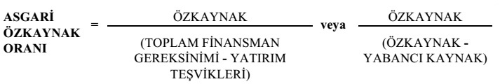 Asgari öz kaynak oranının hesaplanmasında hangi formül kullanılır?