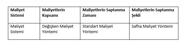 Bu ünitede bu bilgilere göre maliyet sistemi şu şekilde olmalıdır: