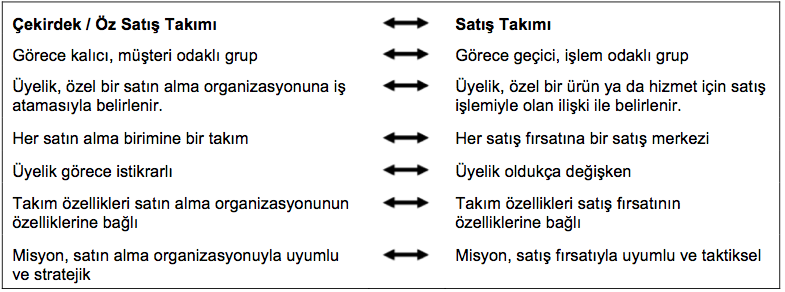 Satış takımı çalışmasına örnek yaklaşımlardan öne çıkanlar aşağıda gösterilmiştir.
