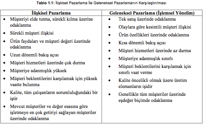 İlişkisel pazarlama ile geleneksel pazarlama (işlemsel yönelim) arasındaki temel farklar nelerdir?