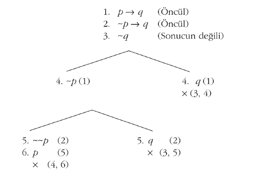 Alt alta öncüller ve sonuç önermesinin değili yazılır.