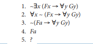 ∃x (Fx → ∀y Gy) önermesi için karşı-model oluşturmak için, çizelgedeki soru işaretli noktaya hangi formül gelmelidir?