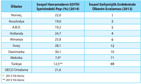 Devlet Tarafından Gerçekleştirilen Sosyal Harcamaların GayriSafi Yurt İçi Hâsıla (GSYİH) İçerisindeki Payı ve İnsani Gelişme Endeksi İçerisinde OECD Ülkelerin Yerleri nasıldır?