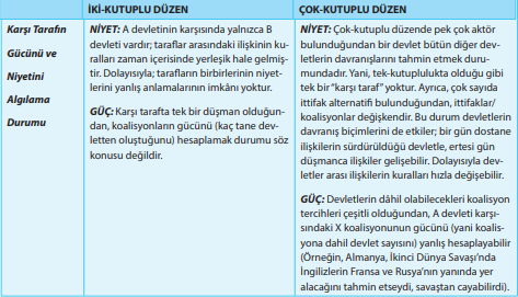 İki kutuplu ve çok kutuplu düzen, karşı tarafın gücünü ve niyetini algılama durumu bakımından nasıl farklılıklar gösterir?