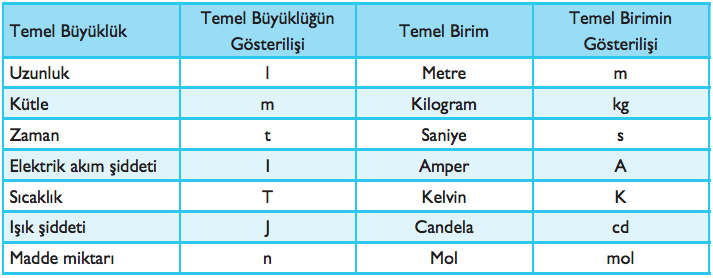 Uluslararası Birimler Sistemi tarafından kabul edilen temel birimler ve gösterilişleri nelerdir?