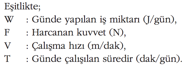 Canlı kuvvet kaynaklarının iş yapabilme yetenekleri genel olarak aşağıdaki eşitlikle belirlenir: