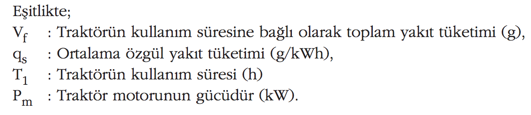 Bir tarım traktörünün kullanım süresine bağlı olarak yakıt tüketimi değeri aşağıdaki eşitlikle hesaplanabilir: