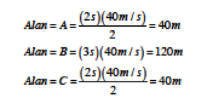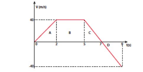 olarak bulunur. Bunun anlamı t=7s olana kadar aracın aldığı toplam yol A+B+C=40 m+120 m+40 m=200 m’dir. Zaman eksenin altında da bir dik üçgen vardır. Bunun alanına ise D diyelim. Bu durumda;