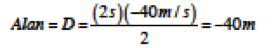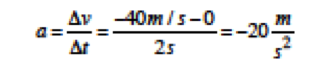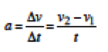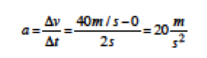 eşitliği ile verilir. Bu ifadede v2 aracın son hızı yani t=2 s anındaki hızı ve v1 ise ilk hızıdır. Grafikte görüldüğü üzere araç durgun halden harekete başladığı için ilk hızı yani v1=0’dır. t=2s anındaki hızı grafikten anlaşılacağı üzere 40 m/s’dir yani v2=40 m/s diyebiliriz. Bu durumda ivme;