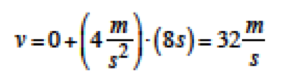 v=32 m/s olarak bulunur. Ayrıca aynı sonuç; v = v0 + at denklemi kullanılarak da aşağıda gösterildiği gibi elde edilebilir;
