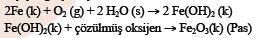 ve oksijenle reaksiyona girerek demir oksiti, yani pas