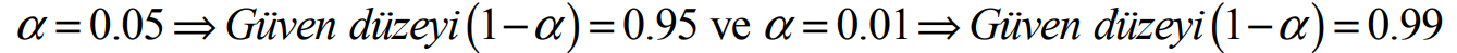 1-α: H0 gerçekte doğru olduğunda onu reddetmeme olasılığıdır ve aralık tahmininde olduğu gibi “Güven Düzeyi” olarak adlandırılır.