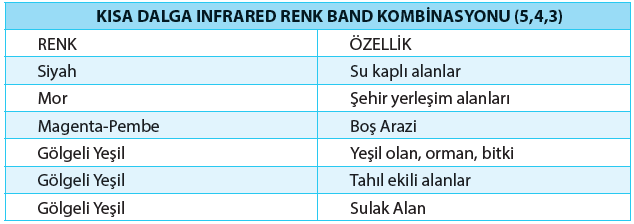 Kısa dalga infrared renk değerleri ve harita elemanları nelerdir?