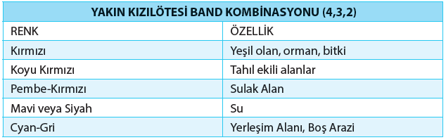 Yakın kızıl ötesi band kombinasyonu ve ilgili harita elemanları nelerdir?
