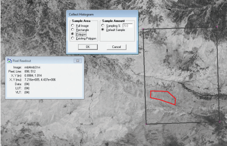 Gruplandırma işlemi sırasında, ilgili koordinattaki piksellerin yansıma değerlerinin birbirine yakın olanlarının aynı gruba atanması gerekmektedir. Farenin görüntü üzerinde tıklandığı koordinattaki piksel değerine yakın olan pikseller, tıklandığı noktadan dışa doğru dağılarak bir alan oluşturur. Fare ile bir dikdörtgen alan veya bir poligon çizerek de bu alan belirleme aşaması gerçekleştirilebilir. Görüntünün farklı noktalarından, harita elemanlarına ait piksellerin yansıma değerleri alınarak tüm harita elemanları kontrollü bir şekilde gruplandırılır.