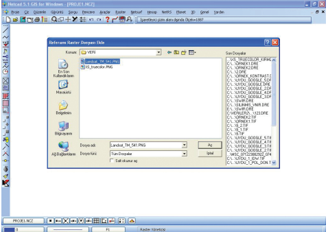 Birinci aşama; Raster Yöneticisi komut penceresinden dosyaların seçilmesi.