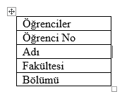 • Ayrılan alanlar için yeni bir tablo oluşturulur.