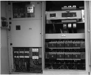 Görselde ana pano görülmekte olup, sayaç, ana şalter ve çıkış şalterlerini bulundurmaktadır. Ana şalter ve çıkış şalterleri arası bağlantılar yüksek akım sebebiyle baralı olarak yapılmıştır.