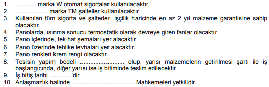 İş yapımından önce iş yükleniciyle iş veren arasında imzalanan, özel taleplerin yer aldığı listedir. Şekilde örnek projeye uygun bir özel şartname örneği gösterilmiştir.